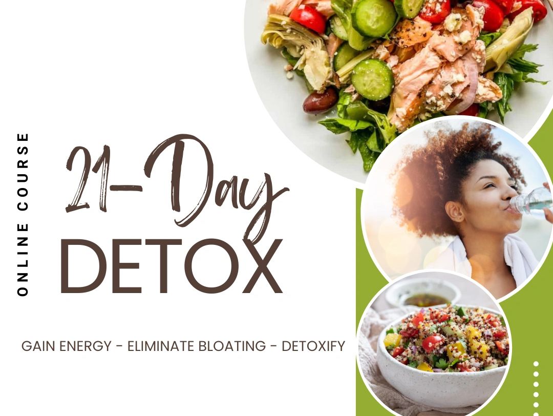 Revitalize your health with my simple, 21-Day Detox! This flexible online course features pre-recorded videos you can watch anytime, anywhere, giving you the step-by-step guidance you need to succeed.